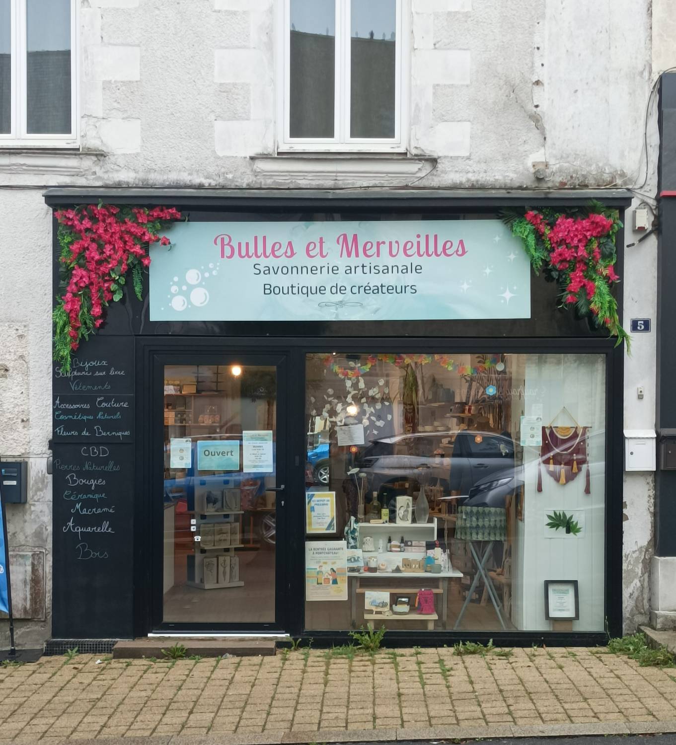 Au cœur de Pontchâteau, Bulles et Merveilles est avant tout une boutique de créateurs où s’expriment passion, originalité et artisanat. Fondée par Virginie (L’Atelier Enchanté) et Lucile (Le Zeste de Samély), notre espace rassemble plusieurs artisans locaux et vous invite à découvrir des objets faits main qui ont une âme : déco, accessoires, bijoux, papeterie, savons… Chaque création raconte une histoire et reflète le talent de son créateur.